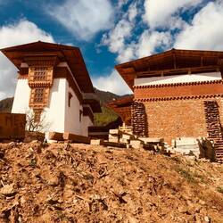 We started off the day with a short drive out of Paro to a small village and a monastery that was mostly demolished in a fire ( Drukgyel Dzong) There was a working gang of locals working to restore the monastery with its 2m thick walls, some splitting rocks, some sorting into piles, women carrying bags of gravel on their backs to mix with the cement etc etc. it is expected to be finished by the end of 2022- all funded by the government to preserve its culture and history.