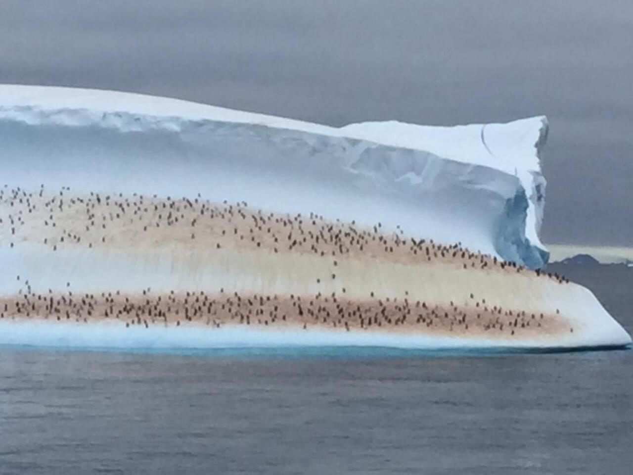 旅行者An iceberg of penguins standing in their own krill coloured shit!!! Xx