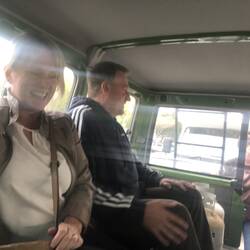 Sue and Gary loved the green truck so much we dropped them home in the back of it- amongst the gas bottles but luckily we had removed the huge pallet we had in situ earlier.