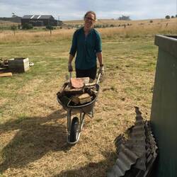 Next it was back to the shed to lay some wood under the chicken wire so it didn’t get swallowed back up by Mother Earth. After this was completed the next job was a bit sad but we had to make sure Fizz’s final resting place didn’t need clearing out - this sad job was made easier by Jess jumping in to prove it was an adequate size for the necessary job when the time comes!! Thanks Jess!!