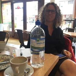 The rain started lashing down and we lost all sight of the mountains but the coffee was hot and my salad was good. K enjoyed her cheese and ham crepe when it finally came and about an hour later, when the rain had abated we set off to find the Freestyle Adventure travel agency to say Thanks and to pick up our gloves and over trousers for the cruise.