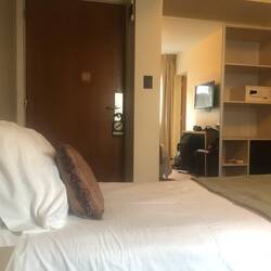 Our lovely taxi driver deposited us at the hotel 10 mins later and the v kind receptionist allowed us to check in even though it was 9am. Great service.