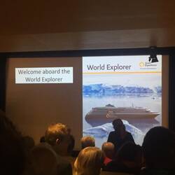 By 1pm we were back in the hotel lobby using their WiFi until it was time to leave to meet the bus that would take us to the World Explorer.