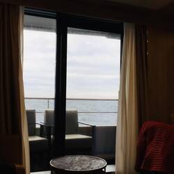 Judy and David were sat on one of the back couches and were surprised to see us as they hadn’t seen us board ( we really got the feeling they didn’t believe we were on the same ship as them!). They said they were happy with their infinity suite without the balcony because who would want a balcony in the cold?..... we would!! We are actually super excited about our balcony with its chairs and table.