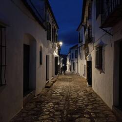 Spet ena bela vasica, tokrat že kar visoko (900 mnv) v nacionalnem parku, ki je znan po lepih pohodnih turah. Pot do sem je vijugala med olupljenimi plutovci, Grazalemo pa sva našla stisnjeno pod pečino. Sva prispela dovolj zgodaj, da sva naredila kratko turco po okolico in tako ujela razglede na vas, tema naju je ujela ravno ob povratku, pa sva naredila še en krog med lučkami. Sva pa očitno zamudila vse dogajanje, saj so bile ob 19h že vse mize pospravljene 😲, ne veva, kje so zdaj tisi Španci, ki so cele noči zunaj? Hmm, mogoče te zimske temperature res ne pomagajo.