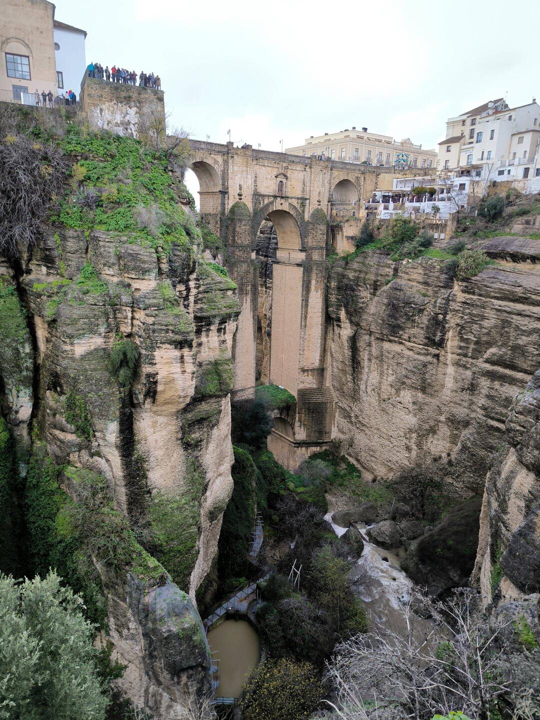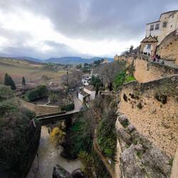 Najbolj markanten v mestu je Puente Nuevo (Novi most): ikonična struktura iz 18. stoletja, ki povezuje staro mestno jedro (La Ciudad) z novejšim delom (El Mercadillo). Most se dviga skoraj 100 metrov nad sotesko El Tajo in ponuja spektakularne razglede. Najine slikce so temnih barv, saj so težki oblaki nagajali s svetlobo.