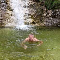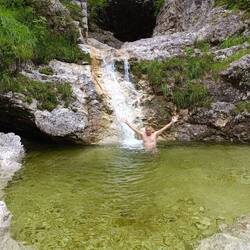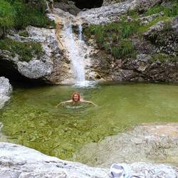 Sva šla še do enega slapka. Najprej peš, potem pa še s kombijem, ker je pač šlo in sva potrucana.