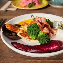 Nous avons pu assister au départ d’un petit groupe de cyclistes en tenue vintage puis nous sommes allés nous régaler avec un délicieux brunch. Pas facile de manger avec style avec des gants 😝