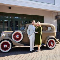 RejsendeQuelle merveilleuse journée tout de même, vous êtes éblouissants d’élégance, ces tenues vous vont à ravir. Interessant ce retour en arrière où la mode fait encore rêver et finalement n’est pas démodée !!! 😀 Un très beau thème pour votre anniversaire et de merveilleux souvenirs. J’adore