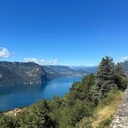 Heute fahren wir mit dem Rad auf die Insel Monte Isola. 530hm bis zur ersten Kirche von Isola.