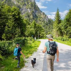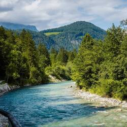 Also habe ich mir für den Urlaub vorgenommen, das Laufrad wieder in Schwung zu bringen. Trotz sicher miserabler Form. Aber erst nach ein paar Nächten satt von Tiefschlaf. Heute war es dann soweit, Wetter, Motivation und restlicher Tagesplan stimmte. Also in Laufdress gehüpft und rauf auf den Berg. Zum warm werden nochmal den Anstieg hinauf zum Stollenweg strammes Schrittes überwinden, dann aber rechts statt links abbiegen, lostraben. So joggt es sich staunend durch diesen Märchenwald, der pitoreske Mooslichtungen, kleine Wasserrinsale am Wegesrand und einige berglastige Aussichten bietet. Der Waldweg mündet schließlich in Richtung Berchdesgaden, wohin wir gestern mit dem Rad unterwegs waren. Steil bergab bemerke ich, dass auch Bergablaufen nicht meine Königsdisziplin ist, so richtig schnell geht das nicht. Verwegen versuche ich mich an einer Bergab-Lauftechnik, bei der man kaum die Knie beugt und eher so die Füße nach vorne wirft, in der Hoffnung, nicht hängen zu ... naja. Deutlich verlangsamt komme ich im Städchen an, da beginnt auch schon der Sightseeing-Teil der Lauftour.