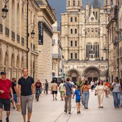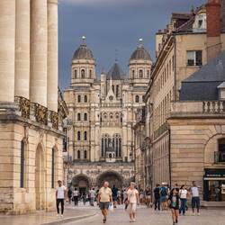 Vermutlich schwingen diese trüben Gedanken während des Ausflugs immer wieder durch seinen rastlosen Geist, wir nehmen aber dennoch die Straßenbahn (bezahlbarer öffentlicher Nahverkehr – wir staunen wie schwachsinnige Touristen) ins Zentrum. Dort schlendern wir weiterhin staunend durch die Altstadt. So viele hübsche kleine Geschäfte, viele davon bieten zuckriges an. Wir gönnen uns ein gefülltes Croissant (zu süß) und besuchen die Cathédrale Saint-Bénigne de Dijon. Nicht nur, dass es sich dabei um eine hinreißend instand gehaltene frühmittelalterliche Kirche handelt, es findet just, als wir den Innenraum betreten, auch ein Gottesdienst statt. Darüber hinaus wird dieser wundervoll von einer Sängerin begleitet, die reuelos den restlichen Vortragenden die Show stiehlt. Fast überirdische Töne füllen den Raum und Beiwohnende (die, die nicht so heidnisch wie wir unterwegs sind) begleiteten den Gesang als voluminöser Chor. Sehr ergreifend, sehr ätherisch.