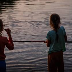Abends veranstalten Erik und Lous noch ein kleines Abschiedsangeln, essen Hart-Bitter-Schokolade wie Brot und genießen den lauen Abend. Denn leider geht es morgen auch schon weiter.Les mer