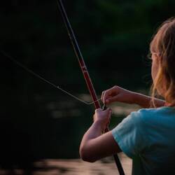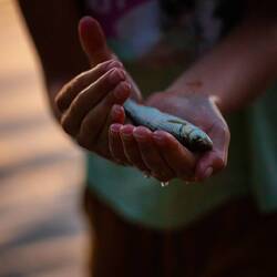 Erik lässt sich von Tochter Lous trotz Sprachbarrieren Angeln beibringen. Ein großer Spaß! Wir hätten nicht unbedingt vermutet, dass Erik als unruhiger Geist Gefallen daran finden kann, an einem Ufer zu stehen und immer wieder den Schwimmer auszuwerfen, hochzuzupfen. Aber Lous und Erik können das stundenlang. Sie fangen kleine Fische mit weißen und roten Maden, machen ihre Hände nass, um die kleinen Fischchen vorsichtig vom Haken zu lösen. Gesammelt wird die Beute im Spüleimer, um dort gezählt und schließlich mit den besten Wünschen für eine lange und glückliche Zukunft wieder in den Fluss entlassen zu werden. Dabei verständigen Lous und Erik sich, indem sie in Zeitlupe sprechen oder quaken, beides geht ganz wunderbar. Und wenn man sich aufs Fischen konzentriert, muss ja ohnehin Ruhe herrschen. Sehr meditativ. Die Größe des gefangenen Fisches ist am besten durch ein entsprechend langes Ohhhh zu bewerten.