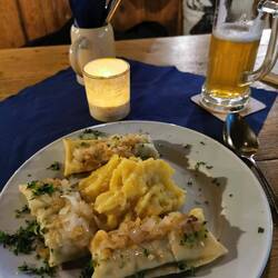 Es gibt geschmelzte Maultaschen (3 Stück) serviert mitRead more