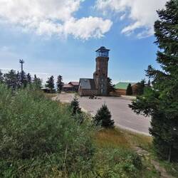 Nach einer kurzen Pause am Turm der Hornisgrinde geht es hinab zum Mummelsee inklusive Umrundung und Besuch der Nixe. Es gibt sogar Badende im Mummelsee!