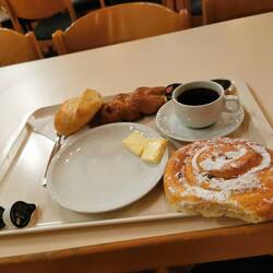 Heute genießen wir ein Pärchen-Frühstück im Hotel. Die Auswahl ist reichhaltig und gut.