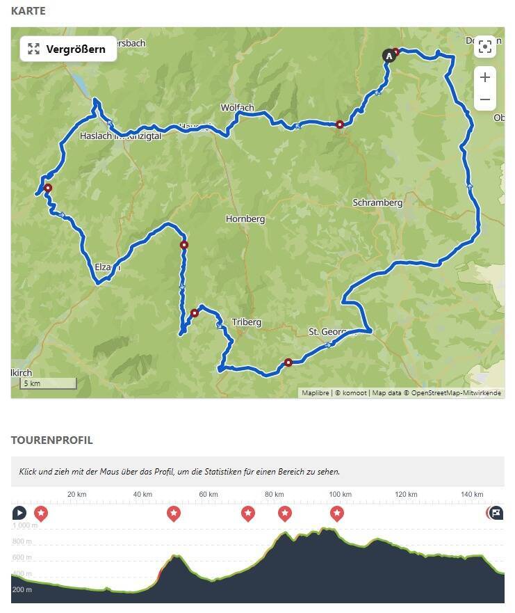 Ostauffahrt von Treib: 5,8 km | 410 Hm | 7,1 % | max. 8,1 %