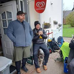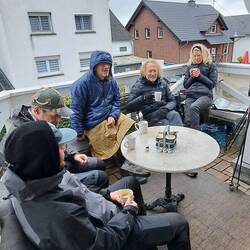 Im Regen. Heute gibt es viele Farbsichere Outfits zu bewundern. Tolle Truppe haben wir hier am Start. Mal schauen wie weit wir heute noch kommen.