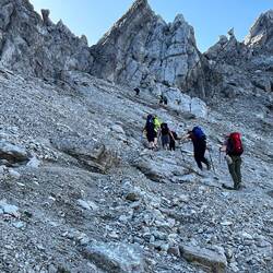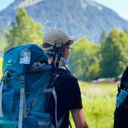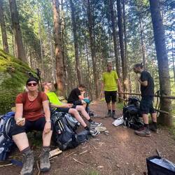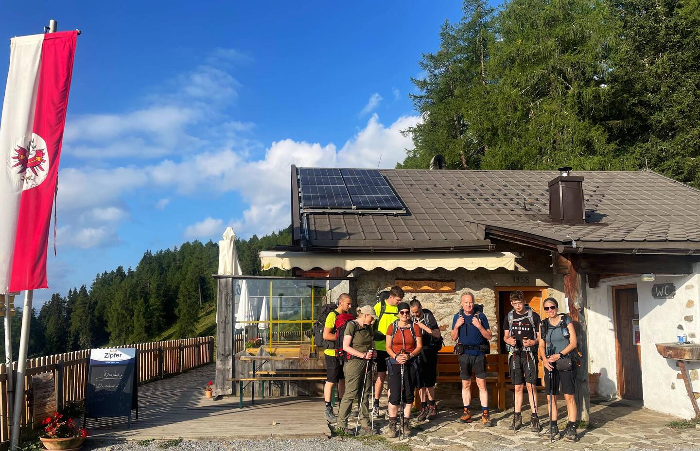 sind dank Jack als Pacemaker und musikalischer Unterhaltung mittels Schlager bestens den Berg hochgekommen, und zwar nur über die steilen Pfade. Respekt! Gemeinsam machen wir uns auf den Weg zur Larcher Alm. Diese ist unfassbar urig, und verfügt insgesamt über nur zwölf Schlafplätze. Wir haben Glück und haben diese für uns ganz alleine. Bald darauf haben alle Tagesgäste die Alm verlassen und wir sind mit den Besitzern alleine dort. Zum Abendessen gibt es Nudelsuppe und einen großen Topf köstliche Käsespätzle mit dem Rahm der eigenen Kuh. Lediglich Luis, der Käse hasst, isst seine Würstchen am Nachbartisch, weil er den Käsegeruch nicht ertragen kann🤣! Der „Almhund“ liegt vor unserer Tischgruppe im Kies und döst! Evi bringt uns noch ein tolles neues Spiel bei, aber außer Felix kann sich keiner mehr so recht konzentrieren. Wir beschließen, das Spiel am Pausentag intensiver zu erlernen. Um 22:00 Uhr liegen alle in ihren Betten und tanken Kraft für die letzte Etappe vor dem Pausentag!もっと詳しく