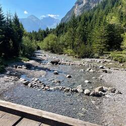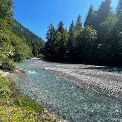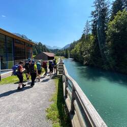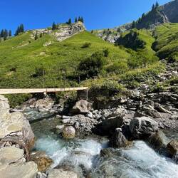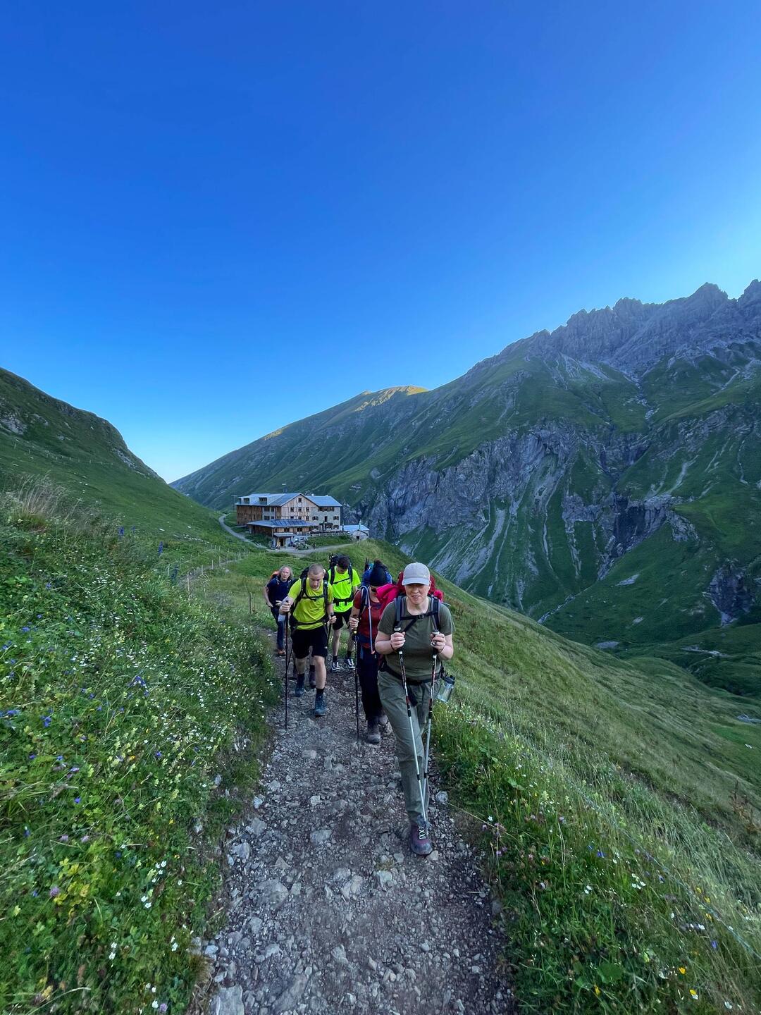 Ein Hoch auf die Deutsche Bahn! Mit nur 15 Minuten Verspätung kamen wir heute Mittag um 12.30 Uhr in Oberstdorf fast pünktlich an. .Angekommen ist auch der Sommer in Oberstdorf. Es war mächtig heiß 🔥! Wie gut, dass wir heute -und auch morgen- nur kleine Etappen zu gehen haben. Wir haben beschlossen, es langsam angehen zu lassen. Erst mal akklimatisieren, einlaufen und an den Rucksack gewöhnen. Anstrengend wird es garantiert noch! Von Oberstdorf aus ging es an der Trettach entlang in Richtung Spielmannsau. Immer mit dem Blick auf die Trettachspitze, das Matterhorn des Allgäus, vorbei am kristallklaren Christlesse. Unser Hostel in Spielmannsau ist das Mountain Hostel. Wir essen zu Abend mit einem wunderbaren Blick auf die Allgäuer Alpen. Achso: Unsere Tramily besteht aus Guido, unseren Jungs Felix und Moritz, unseren Neffen Jack und Luis sowie unserer lieben Wanderfreundin Evi, Sonja und mir. Wir freuen uns auf die erste Bergetappe morgen und liegen bereits um 21.15 Uhr im Bett.もっと詳しく