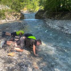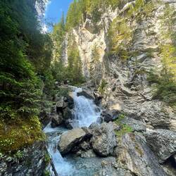 Um 7 Uhr trifft sich unsere Tramily zum Frühstück, um 8.15 Uhr sind wir bereit zur heutigen Etappe. Wir steigen auf zum Mädlejoch auf 1974m. Ein Grenzstein markiert den Übergang von Deutschland nach Österreich. Ein Wanderer, der auf seinen Sohn wartet, macht ein Foto von uns. Es folgt ein längerer Abstieg, bevor wir auf die Roßgumpenalp treffen. Nach einem kühlen Getränk geht’s zum Roßgumpenwasserfall, in dessen Gumpe unsere unerschrockenen Jungs ein eiskaltes Bad nehmen. Respekt! Anschließend folgt ein Fotoshooting . Vielen Dank für die tollen Bilder, Luis! Wir streifen Österreichs längste Hängebrücke (200m lang/110m hoch) und sind bald im oberen Lechtal in Bach angekommen. Nach einer Stärkung im Biergarten fahren wir mit dem Bus zu unserer Unterkunft nach Häselgehr, weil wir in Bach kein Zimmer bekommen konnten. Aber morgen geht’s natürlich mit dem Bus zurück nach Bach und der Trail wird an der Ausstiegsstelle fortgesetzt. Den Abend lassen wir bei gutem Essen und einem Haselnussbrand aufs Haus ausklingen, denn der Ortsname Häselgehr ist wohl auf die Haselnuss zurück zu führen. Der Wirt reicht uns noch die Ortschronik, wir spielen jedoch lieber eine Runde Dart, bei der Sonja lange einen großen Abstand hält, letztendlich Jack aber doch knapp gewinnt.もっと詳しく