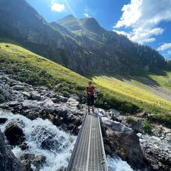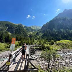 Ein Hoch auf die Deutsche Bahn! Mit nur 15 Minuten Verspätung kamen wir heute Mittag um 12.30 Uhr in Oberstdorf fast pünktlich an. .Angekommen ist auch der Sommer in Oberstdorf. Es war mächtig heiß 🔥! Wie gut, dass wir heute -und auch morgen- nur kleine Etappen zu gehen haben. Wir haben beschlossen, es langsam angehen zu lassen. Erst mal akklimatisieren, einlaufen und an den Rucksack gewöhnen. Anstrengend wird es garantiert noch! Von Oberstdorf aus ging es an der Trettach entlang in Richtung Spielmannsau. Immer mit dem Blick auf die Trettachspitze, das Matterhorn des Allgäus, vorbei am kristallklaren Christlesse. Unser Hostel in Spielmannsau ist das Mountain Hostel. Wir essen zu Abend mit einem wunderbaren Blick auf die Allgäuer Alpen. Achso: Unsere Tramily besteht aus Guido, unseren Jungs Felix und Moritz, unseren Neffen Jack und Luis sowie unserer lieben Wanderfreundin Evi, Sonja und mir. Wir freuen uns auf die erste Bergetappe morgen und liegen bereits um 21.15 Uhr im Bett.Read more