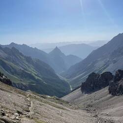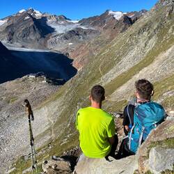 Wieder einmal entscheiden wir, die Bergsportschulen ziehen zu lassen und uns für Bergverhältnisse spät auf den Weg zu machen. Um 7 Uhr sind wir zum Frühstücken verabredet, danach wird gepackt. Wie bereits erwähnt, nutzen Moritz und ich den Morgen noch dazu, den Gipfel des Karlesberg zu besteigen. Es ist noch niemand draußen, als wir um 6 Uhr starten. Wir genießen die wunderbare Lichtstimmung des Sonnenaufgangs und dass wir die Bergwelt gerade mal für uns alleine haben. In 24 Minuten ist der Anstieg geschafft und wir erreichen das Gipfelkreuz. Wir saugen den Augenblick in uns auf und nehmen uns noch die Zeit, Gipfelfotos und Panoramabilder zu machen. Pünktlich um 7 Uhr sind wir zurück. Heute haben wir von der Hütte aus, die zwar am Ende des Pitztals liegt, aber bereits zu den Ötztaler Alpen gehört, zunächst einen einstündigen Anstieg aufs Pitztaler Jöchl auf 2996m zu machen. Die Sonne ist zurück und uns erwartet ein warmer Tag mit blauem Himmel. Auf dem Weg haben wir das große Glück zwei Steinböcke beobachten zu können. Einer grast ausgiebig, der andere spaziert gemächlich einen Wanderweg einige Meter unter uns entlang. Wir freuen uns riesig und Luis gelingt es, ihn zu filmen. Das Gelände des Pitztaler Jöchels ist, genau wie die Seescharte, technisch anspruchsvoll. Trittsicher und schwindelfrei sollten E5 Wanderer auf jeden Fall sein. Wie fordernd das Gelände ist, merkt man daran, dass wir für die ersten beiden km fast zwei Stunden benötigen. Nach einem kleinen Abstieg kommen wir im Skigebiet Sölden an. Nach einer kurzen Pause machen wir uns auf den Weg durch den Rosi-Mittermeier-Tunnel. Dieser ist ganze 2,3 km lang und führt uns steil ansteigend zum Tiefenbachferner. Hier beginnt der 4 stündige Panoramaweg nach Vent, ausgesetzt hoch oben am Hang entlang. Von weitem sehen wir auf der gegenüberliegenden Seite bereits den Similaungletscher, in dessen Richtung wir morgen unterwegs sind. Wir kommen in einer sehr skurrilen Pension unter, in der man aufpassen muss, sich nachts nicht zu erschrecken, wenn man auf Toilette geht!Read more