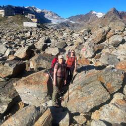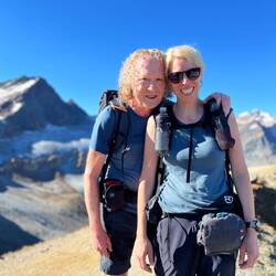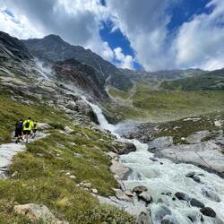 Erholt starten wir nach dem Pausentag durch die 2. Hälfte des Pitztals. Wir haben zunächst ca. 14 recht flache km, bevor wir zur Braunschweiger Hütte, unserem bisher höchsten Schlafplatz auf 2.759 m aufsteigen. Unterwegs versorgen wir uns in einem kleinen Lädchen mit Getränken und Lebensmitteln. Es gibt sogar einen Kaffeeautomat! Das letzte Örtchen im Pitztal ist Mittelberg. Nach diesem Ort ist auch der Gletscher oberhalb der Braunschweiger Hütte benannt, der Mittelbergferner Wir haben Glück, auch hier steht die Materialseilbahn für den Rucksacktransport bereit. Plötzlich rufen mich die Jungs… oberhalb sitzt auf einem Felsvorsprung ganz nah ein Murmeltier! Wie super süß! Wir packen die Tagesrucksäcke und laden die schweren Rucksäcke in die Seilbahn. Dass wir hier als eigentlich erfahrene Bergwanderer einen Anfängerfehler begehen, ahnen wir jetzt noch nicht. Es ist heiß und so nehmen wir zum Teil nur Fließjacken, teilweise auch gar keine Jacken mit. Nur Moritz und Evi haben Wind- und Regenjacke dabei! Wir beginnen mit dem Aufstieg zur Hütte über den Wasserfallweg. Hier stürzt sich zusammen mit dem Gletscherwasser des Mittelbergferners die Pitze tosend ins Tal. Zunächst hält sich das Wetter und wir genießen den wunderschönen Weg, der klettersteigartig und hochalpin anmutet. Leider zieht es sich bald zu, Nebel und Wind kommen auf. Als es dann noch anfängt zu regnen, wird es richtig ungemütlich….. wie dumm von uns, wissen wir doch, wie schnell das Wetter in den Bergen umschlagen kann! Ich bin echt glücklich, als alle wohlbehalten in der Hütte angekommen sind! Alle ziehen sich schnell trockene Klamotten an und wir versammeln uns im Gastraum, um heiße Suppen und Kaiserschmarren zu inhalieren! Jetzt kommt doch tatsächlich noch einmal die Sonne raus. Ich laufe schnell nach draußen und mache noch ein paar Bilder in der Sonne. Evi entdeckt sogar noch Steinböcke! Vor dem unfassbar leckeren Abendessen ruhen wir uns noch eine Weile auf dem Bett aus! Alle sind recht müde und wir gehen früh in unsere Vierbettzimmer. Morgen früh bin ich mit Moritz um 6:00 Uhr vor der Hütte verabredet. Wir wollen noch den Hausberg der Braunschweiger Hütte, den 2901m hohen Karlsberg vor dem Frühstück besteigen.Read more
