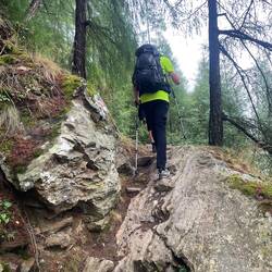 Bis zu unserem Ziel haben wir noch ca. 13 km durchs Schnalstal, Südtirol. Normalerweise würden uns die Strecke über Wanderwege an den steilen bewaldeten Hängen entlang führen, aber Moritz plant die Route um und nimmt z.T. Höhenmeter raus. Zum einen, weil es mir nicht gut geht, aber auch, weil die Wanderlust der Gruppe sich nach dem verregneten Vormittag in Grenzen hält. Wir gehen ein ganzes Stück an der Hauptstraße entlang. Schließlich überqueren wir einen Fluss, Bevor wir unser Ziel erreichen, müssen wir noch den „Pfad des Todes“ hinauf. Das es so steile Pfade überhaupt gibt, war uns bisher nicht bewusst! Ohne Stöcke wäre es bei dem Wetter nicht möglich gewesen, dort hoch zu kommen! Eine Recherche bei Komoot ergibt, dass es 1,2 km mit bis zu 37 Grad Steigung den Berg hoch ging! Unsere heutige Unterkunft ist der Untervernatschhof in St. Katharinaberg. Er liegt direkt am Meraner Höhenweg und wird lt. Junionchefin erstmals um 1200 erwähnt. Es ist so super urig hier und wir genießen unser Abendessen und die Männer noch so einige Getränke, die im hauseigenen, mit Bergquellwasser versorgtem Brunnen gekühlt werden.. Die letzten beiden Etappen auf dem Meraner Höhenweg stehen an, dann haben wir unser Ziel erreicht!もっと詳しく