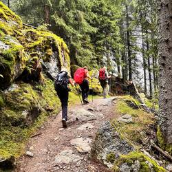 Bis zu unserem Ziel haben wir noch ca. 13 km durchs Schnalstal, Südtirol. Normalerweise würden uns die Strecke über Wanderwege an den steilen bewaldeten Hängen entlang führen, aber Moritz plant die Route um und nimmt z.T. Höhenmeter raus. Zum einen, weil es mir nicht gut geht, aber auch, weil die Wanderlust der Gruppe sich nach dem verregneten Vormittag in Grenzen hält. Wir gehen ein ganzes Stück an der Hauptstraße entlang. Schließlich überqueren wir einen Fluss, Bevor wir unser Ziel erreichen, müssen wir noch den „Pfad des Todes“ hinauf. Das es so steile Pfade überhaupt gibt, war uns bisher nicht bewusst! Ohne Stöcke wäre es bei dem Wetter nicht möglich gewesen, dort hoch zu kommen! Eine Recherche bei Komoot ergibt, dass es 1,2 km mit bis zu 37 Grad Steigung den Berg hoch ging! Unsere heutige Unterkunft ist der Untervernatschhof in St. Katharinaberg. Er liegt direkt am Meraner Höhenweg und wird lt. Junionchefin erstmals um 1200 erwähnt. Es ist so super urig hier und wir genießen unser Abendessen und die Männer noch so einige Getränke, die im hauseigenen, mit Bergquellwasser versorgtem Brunnen gekühlt werden.. Die letzten beiden Etappen auf dem Meraner Höhenweg stehen an, dann haben wir unser Ziel erreicht!Read more
