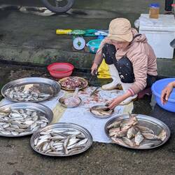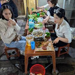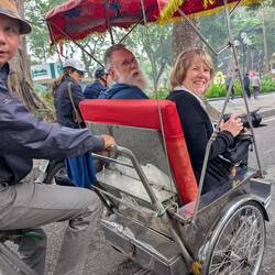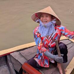 A bit slower start to the day. We met Jenny, our Guide, at 0830 and were transported by an electric people mover to the ancient town of Hoi An for a walking tour followed by a traditional VietnameseMeer informatie