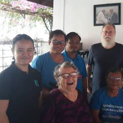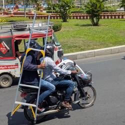 Today 6 in our group flew to Phnom Pen at 1.30 pm, which meant we were able to sleep in until 8 am! What bliss! We arrived at our hotel just after 4 pm. The rest of the group took the bus, leaving atMeer informatie