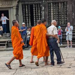 Today we travelled 25 mins to the Khmer temple of Angkor Wat - which was built over approx 37 years during the 12th century by Buddhists. Hindus then took over the temple and destroyed many of theMeer informatie