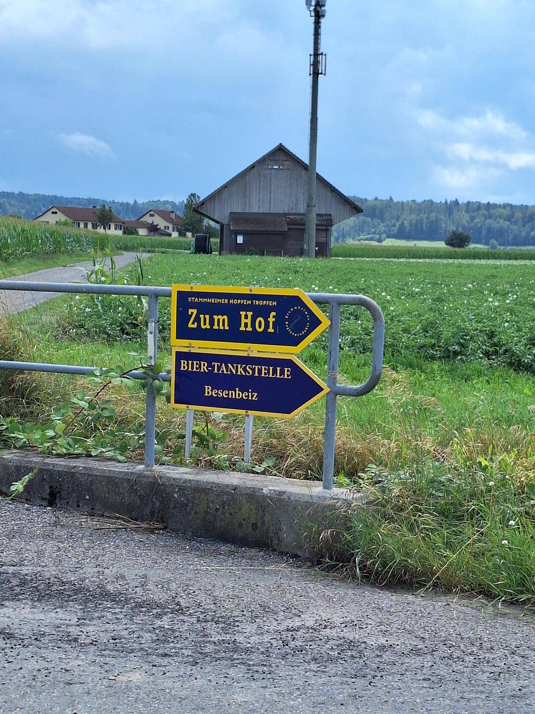 Ganz in der Nähe unseres Stellplatzes hat es noch einen zweiten "Hopfenhof", ebenfalls mit Stellplätzen, Besenbeizli und Hofladen
