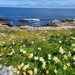 Our first stop was The Bridge of Ross. There used to be 3 natural land bridges here. But one collapsed. It was a magnificent area. The rocks, the colors, all the flowers. So beautiful.