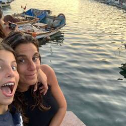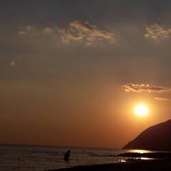Colazione in piazzetta con freddo espresso e freddo cappuccino. Decidiamo di andare a mare vicino casa. Le ragazze si fanno un bagno meraviglioso al tramonto ed oltre.