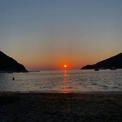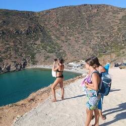Terzo giorno a Sifnos, andiamo in una spiaggia a nord, mare bellissimo ma faticosa discese e sopratutto grande SALITA. A fine giornata tramonto nella spiaggia del camping
