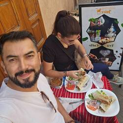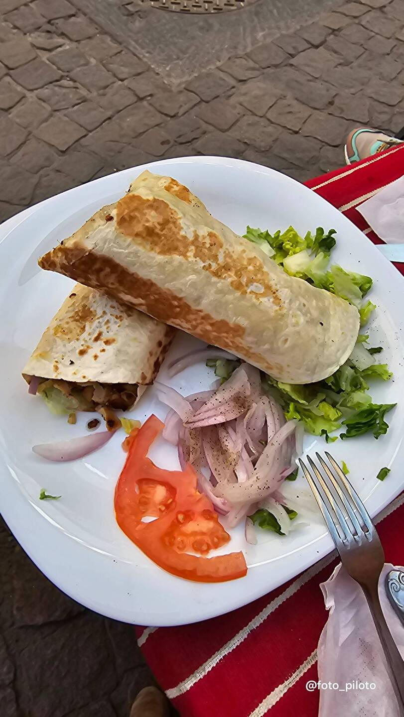 Mario quería kebab y encontramos uno en medio de la calle, la chiquitina compró pastela por el Internet