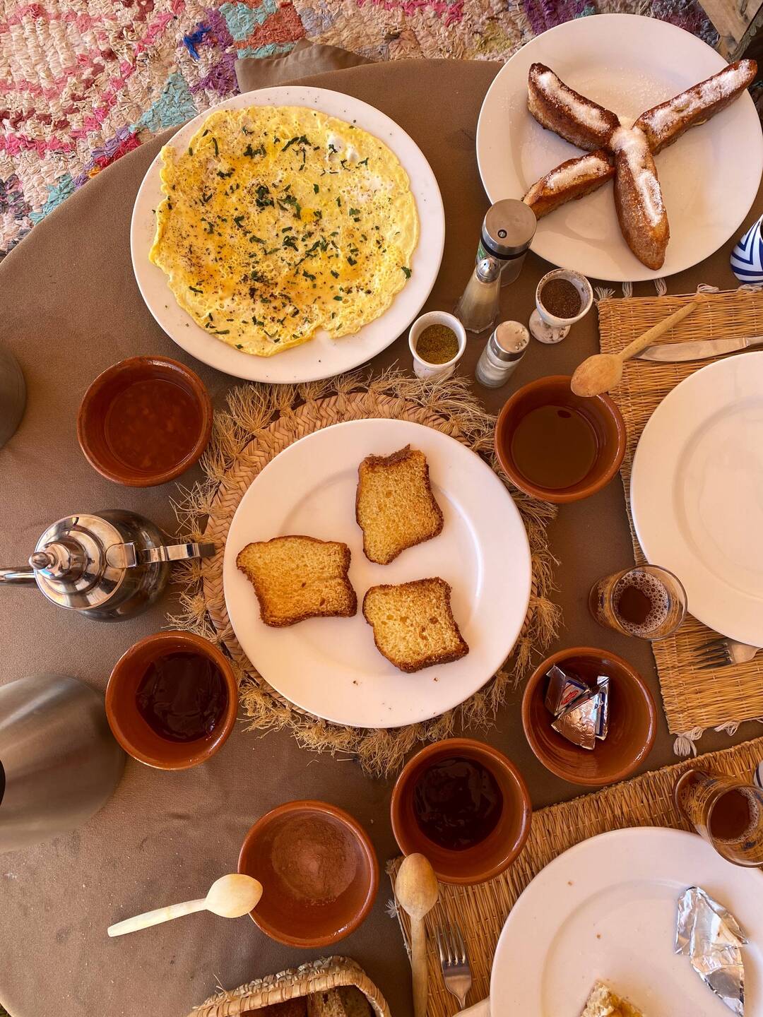 Empezamos el dia con energia y un buen desayuno marroqui, que hoy tenemos un dia largo por delante.