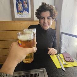 Ya para terminar el día, nos tomamos unas cervezas belgas en la casa de Miriam. También ha hecho una lasaña casera muy rica pero nos hemos hecho foto.