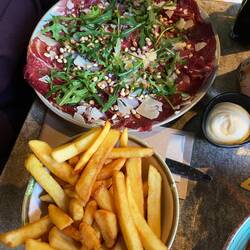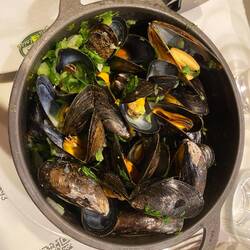 - menú mejillones + patatas + cerveza