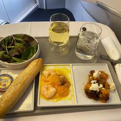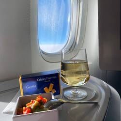 Me han dado un sitio mejor en el avión y champagne con una cajita gourmet!Read more