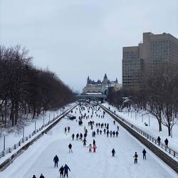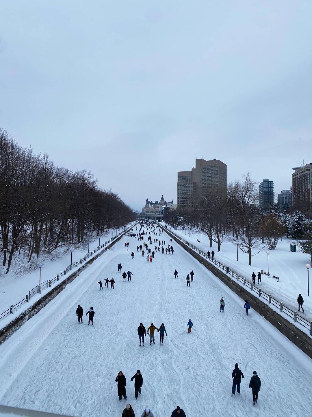 Después del museo me acerco al canal donde hay muchas personas patinando.