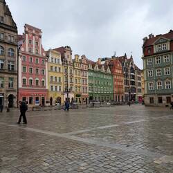 Ya después de haber desayunado en el apartamento nos vamos a conocer la ciudad de Breslavia. Lo más bonito es la plaza del mercado con las casitas de colores.