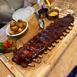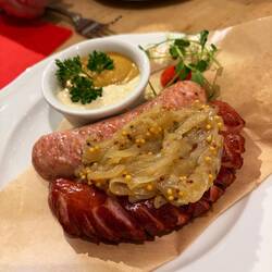 Hoy hemos almorzado en la cervecería más antigua de la ciudad, estaba en un subterráneo. He tomado costillas muy ricas.