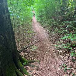 Nach ordentlichen Gewittern ging es heute um 8 Uhr los. Hier sind es nicht nur Waldautobahnen sondern auch mal Singletrails. Das Wetter ist noch etwas feucht aber der Wind, dort wo er denn wehtLæs mere