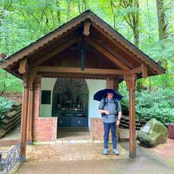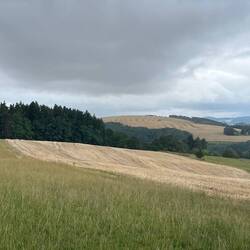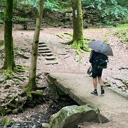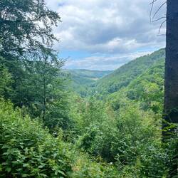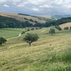 Heute war es immer mal wieder regnerisch 🌧️ aber der Schirm reichte. Nach dem Mittag in der Schaumberg Alm haben wir noch den Abstieg nach Tholey gemeistert.