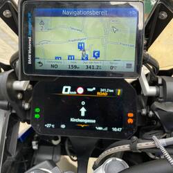 Ja, die Navigation, das ist neben anderem auch so eine Herausforderung und mehr noch eine stetige Überraschung. Schön, dass es sie gibt. Aber warum weichen Angaben bei zwei identisch eingesetzten Systemen mit gleichen Einstellungen voneinander ab. Wahrscheinlich weil eben viele Wege nach Rom führen. Noch bunter wird es mit den Abweichungen zwischen zwei unterschiedlichen Systemen. Aber wir sind froh, dass wir zwei haben. Denn seit sich BMW von Garmin verabschiedet hat und ein eigenes System, das über Handy-App und Cradle- bzw. Tft-Display seine Ergebnisse ausspuckt, entwickelt hat, gibt es ein paar Gründe mehr, einfach mal garnichts anzuzeigen. So ist unsere häufigste Frage über unsere Interkom: Was zeigt Dein Gerät an?