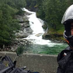 Heut' morgen um 9 Uhr gestartet Richtung Geiranger, was für ne tolle Spitzkehren Strecke. Dort angekommen, Touris über Touris, lag auch grad ein Kreuzfahrtschiff im Fjord. Passte so gar nicht in dasもっと詳しく